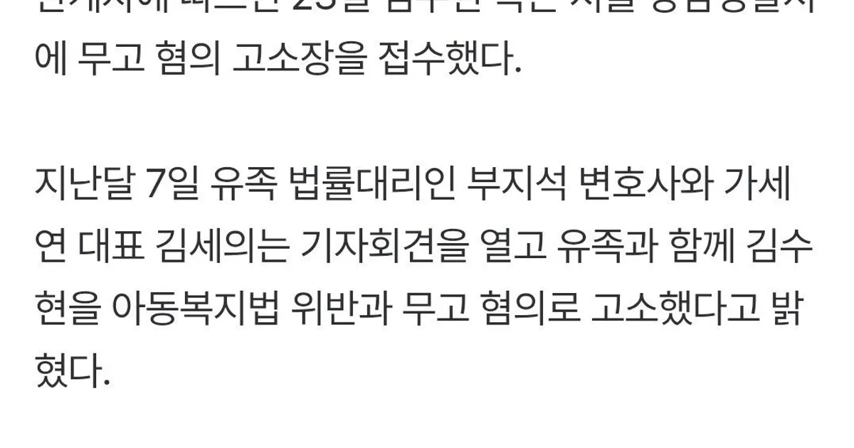 김수현, 김새론 유족·가세연 김세의 '무고 혐의'로 고소