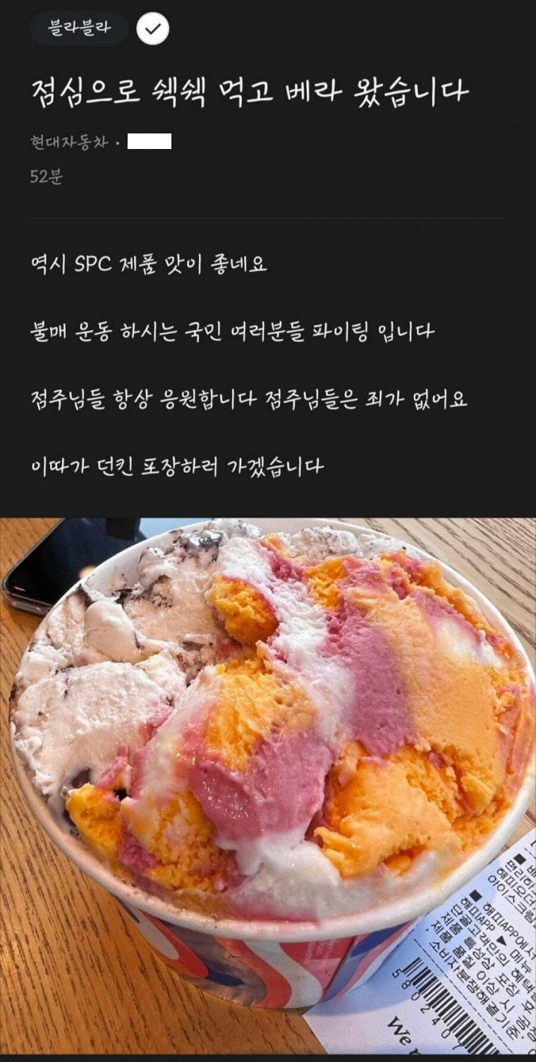 블라) SPC 제품 먹고 인증샷 올린 현대자동차 직원
